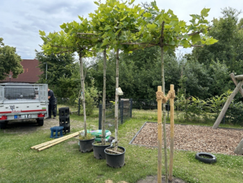 Dank der Förderung der Caritas GemeinschaftsStiftung für das Bistum Münster, freuen die Kinder sich über die neuen großen Dachplatanen, als Schattenspender.