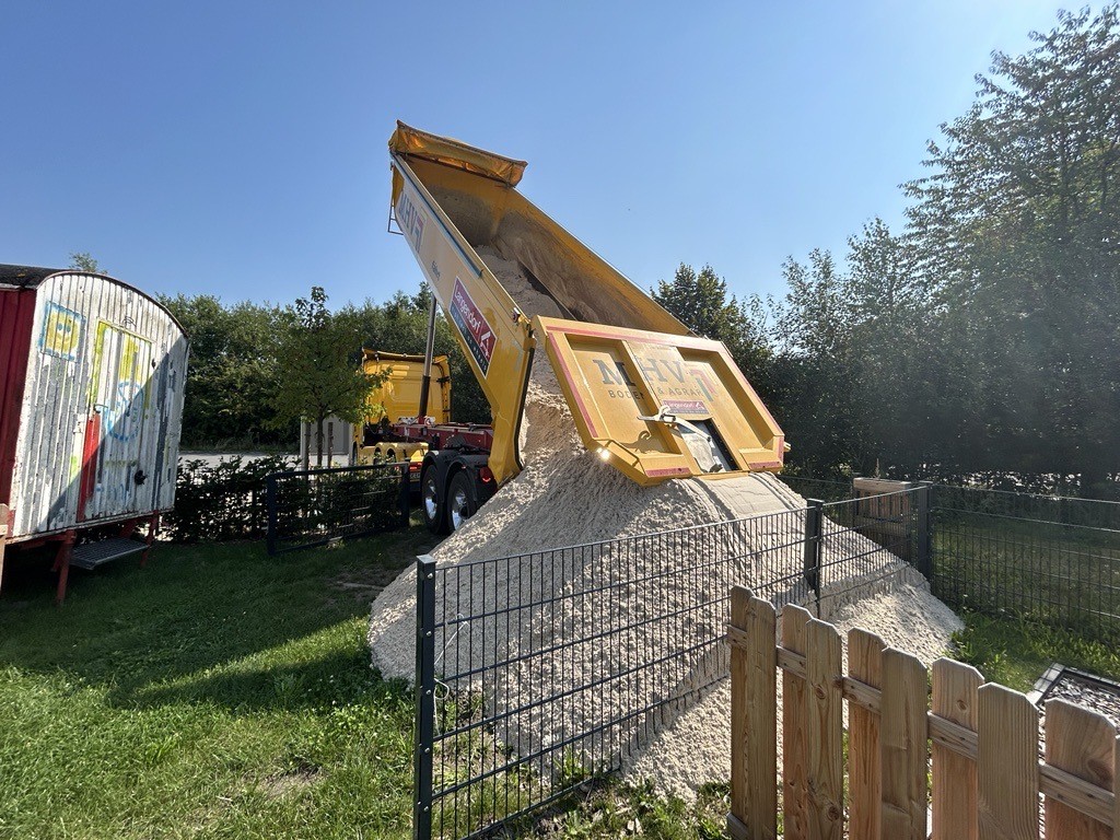 nicht nur das Fernsehen zu Gast, auch ein riesiger LKW mit neuem Spielsand.