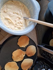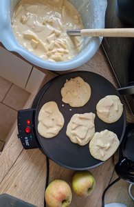 Heute haben wir in der Kita Pfannkuchen mit frisch geernteten Äpfeln zubereitet.